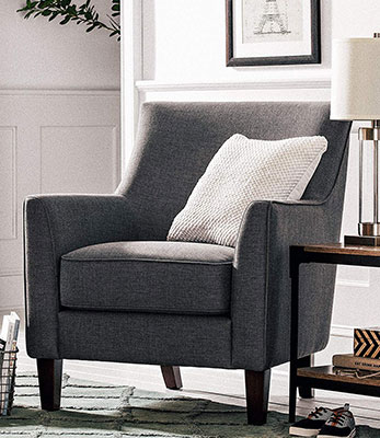 he crisp silhouette and plush cushioning of this arm chair add contemporary appeal to any space. Its linen-look fabric is high performing and soft to the touch for extra coziness.
